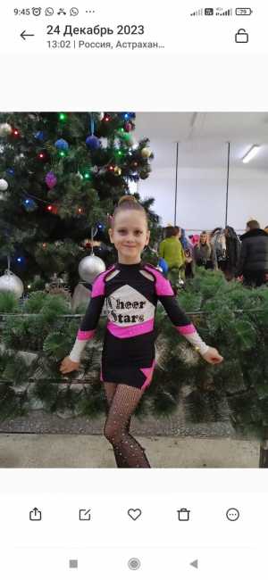 Костюм для выступления по черлидингу, гимнастике и др. Верхняя часть вся в стразах. Ткань отличного качества.