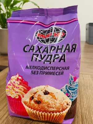 Сахарная пудра мелкодисперсная собственного производства. Пудра благодаря мелкому помолу моментально растворяется в жидкости.