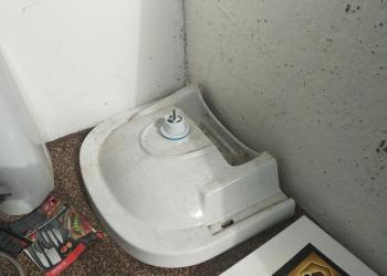 Раковина с подиумом раздельные, новые. Просто заменил на стол с раковиной и зеркалом в душевой.